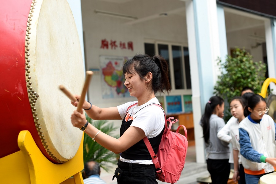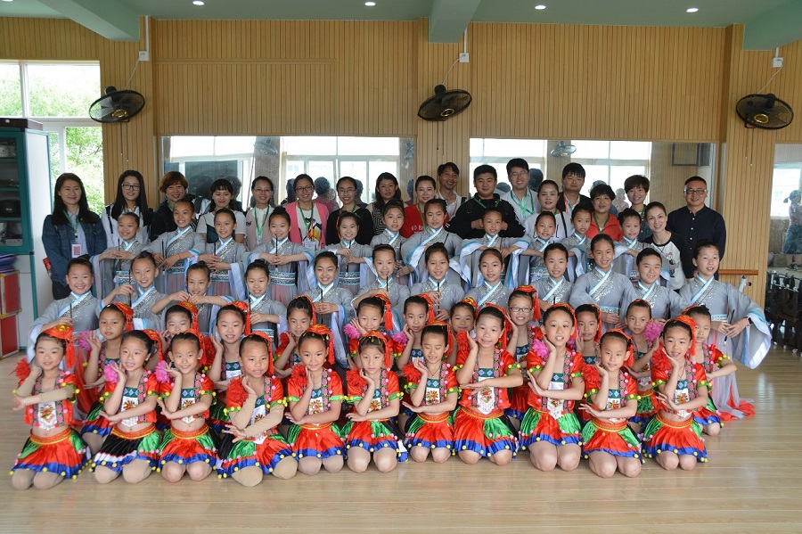 5月4日,在长坑小学和当地教育局的支持下,老师们来到丽水景宁畲族自治县,分别参观走访了当地三所“小而美”的乡村学校。东坑小学,一所充满了畲族文化的乡村“三味”小学校,所谓“三味”是景宁县当地所倡导特色乡村教育,分别为乡土味、小班味、家园味。东坑小学秉着“花样教育,做最美的自己”的教学理念育人育心,学校不仅在校园文化建设结合了畲族的特点,同时也在大课间活动融入了有趣的畲族色彩。