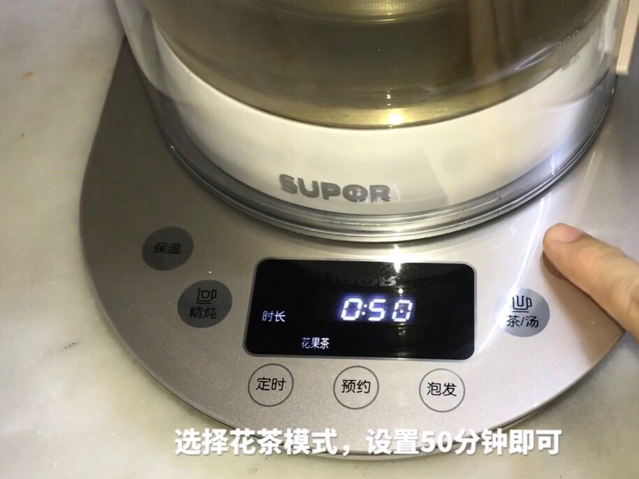 4.盖上盖子,选择花茶模式,时间设定50分钟,点开始即可